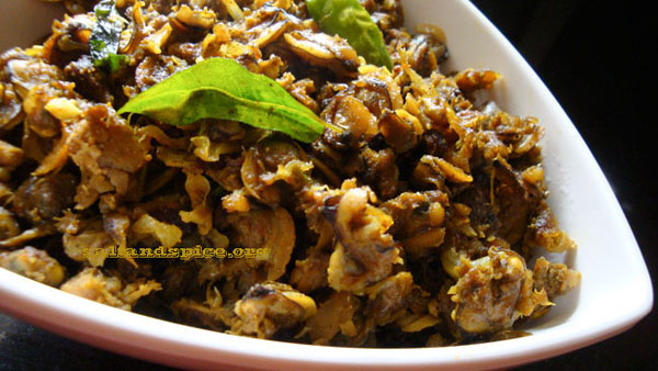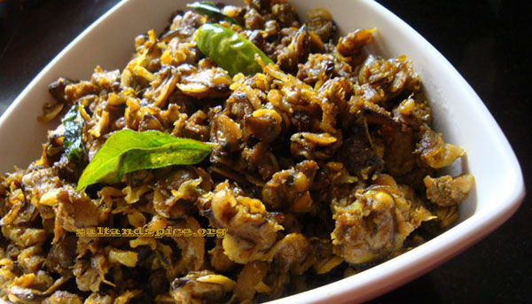 Wash the clams several times and make sure that there is no trace of sand left in it. Squeeze the clams well. Pressure cook clams along with onion, ginger, garlic, spice powders and salt for 5 minutes on a low flame, after the first whistle. Do not add any water while cooking. Heat oil in a non-stick pan and add green chillies and curry leaves, followed by the spice powders. Add the cooked clams and fry for 10 minutes on a medium flame. Serve yummy ‘Kakka Irachi Ularthiyathu / Clams fry’ as a side dish with rice, chapathi, porotta or bread. Enjoy!