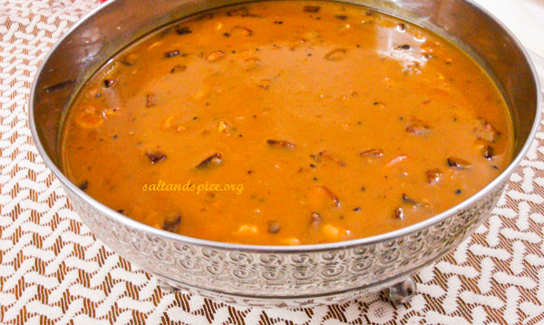 Heat 1 tsp ghee in a non-stick pan and dry roast the dal till light brown in color. Wash and put it in an 8 litre pressure cooker. Add 3 cups of water and pressure cook for 15 minutes on a low flame, after the first whistle. Cook the sago in 1 cup of water till translucent. Melt the jaggery with 1/2 cup of water. Strain and keep it aside. Powder cardamom, dry ginger and cumin seeds along with 1 tsp of sugar in a mixer. Mash the cooked dal with a ladle. Let 1/4 th of the dal be as it is after mashing. Pour melted jaggery and simmer till the mixture is reduced to half. Add cooked sago, 2 cups of thin coconut milk and salt. Mix well and let it reduce to half. Now add 2 cups more of thin coconut milk. Once it starts to boil, add powdered spices and mix well. Finally add the thick coconut millk. Mix well and switch off the flame. Heat 3 tsp of ghee in a pan and splutter sesame seeds. Fry coconut pieces, cashew nuts and raisins and pour over the pradhaman. Lip-smacking ‘Kadala Parippu Pradhaman’ is ready! Enjoy with your loved ones!