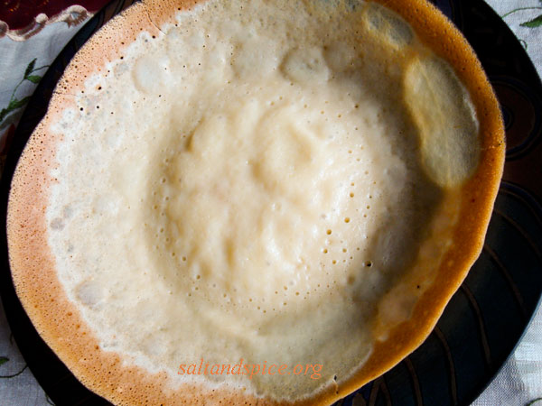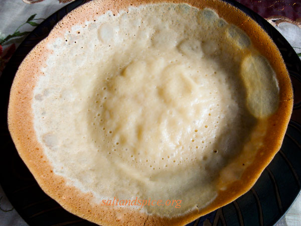 Make a smooth batter using all the mentioned ingredients. Keep it aside for 15 minutes. Heat an ‘appachatti’ or a small non-stick wok and pour a laddle full of batter. Rotate the wok once. Cover with a lid and cook on a medium flame for 2 minutes. Transfer it to a plate. Repeat the same process with the rest of the batter. Super tasty ‘Maida Palappam’ is now ready! Serve it as a snack or for breakfast. Enjoy with your kids!