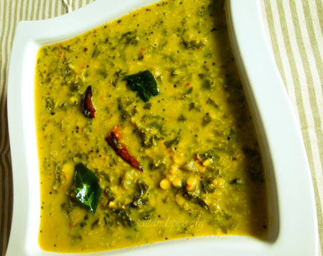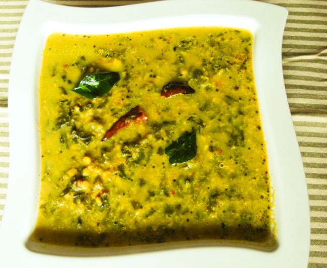 Pressure cook spinach along with the mentioned ingredients for 5 minutes on a low flame, after the first whistle. Let it cool. Grind coconut along with the other ingredients to a coarse paste. Add this paste to the cooked dal mixture. Bring it to a boil and switch off the flame. Heat oil in a small pan and splutter mustard seeds. Add all other ingredients and switch off the flame. Pour it over the ‘Keerai Mulagootal’ and mix well. Serve delicious and nutritious ‘Keerai Mulagootal / Spinach and Dal Curry’ with steamed rice or rotis. Cheers!